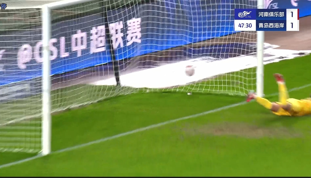 第48分钟,西海岸扳平比分,戴维森禁区内面对多人包夹巧妙外脚背一拨,段刘愚迎球直接推射飞入球网,西海岸1-1河南队。↓