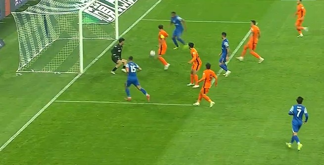 第60分钟,吴曦中路直塞球到禁区米内罗左路小角度扫射被挡出。↓
