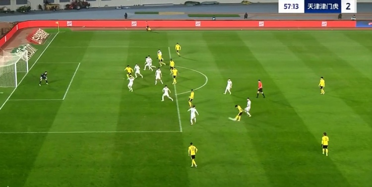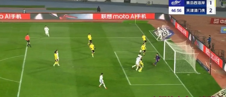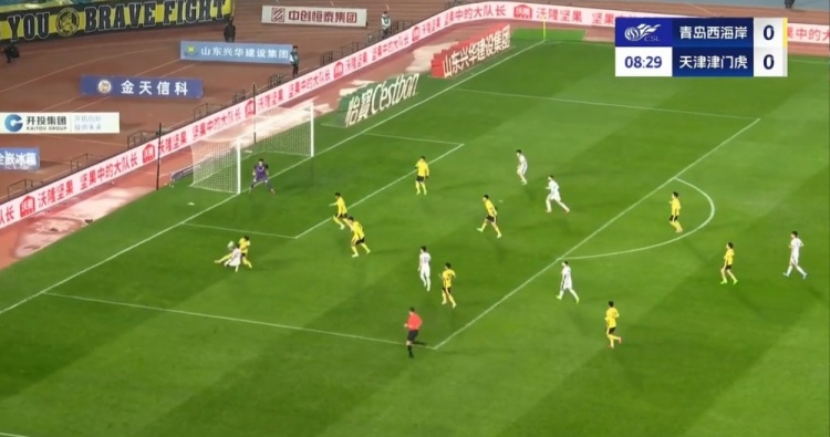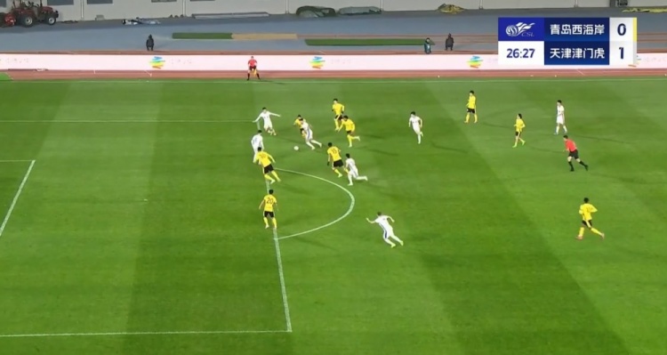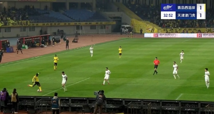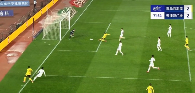 全场比赛结束,天津津门虎客场2-2战平青岛西海岸。