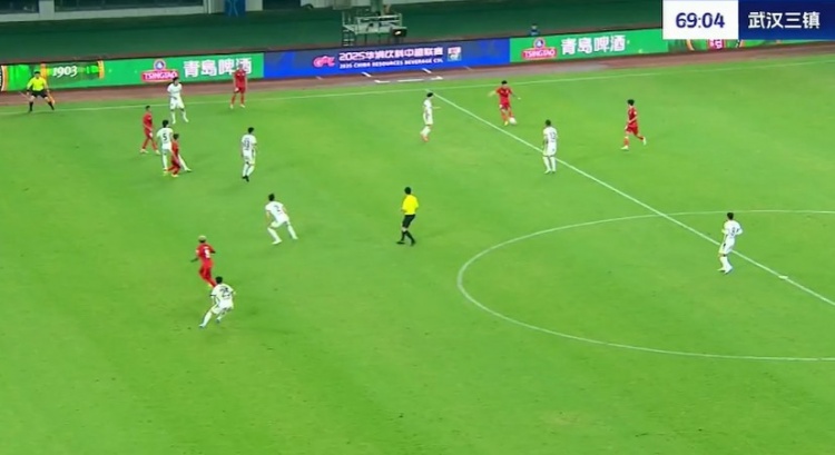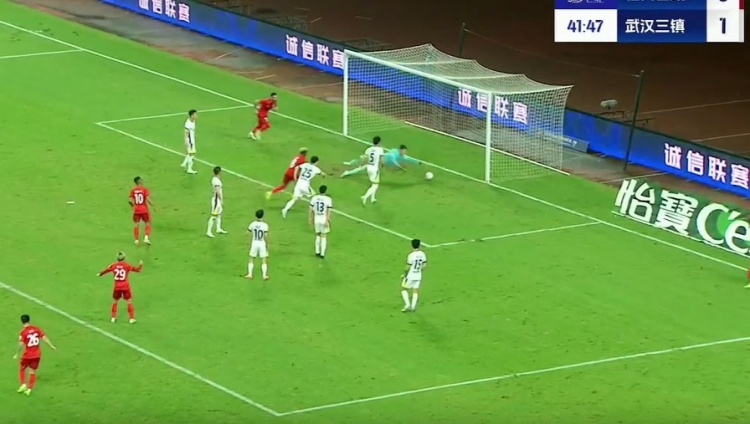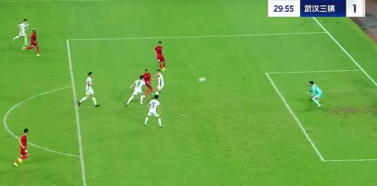 第31分钟,罗德里格凭借个人能力摆脱防守,随后的打门被三镇后防线合力防下。↓