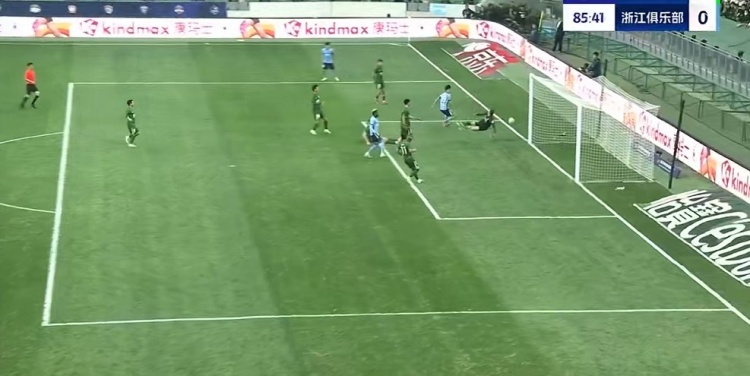 第88分钟,王钰栋右侧下底传中被解围,左侧浙江队再送传中,布彭扎鱼跃头球冲顶破门,但边裁举旗示意越位在先进球无效,比分仍为2-0↓