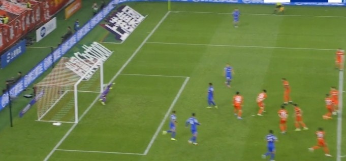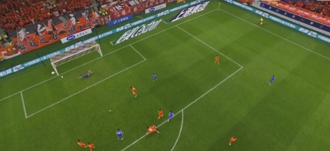 第73分钟,高天意任意球直接攻门被颜骏凌侧身扑出底线。↓