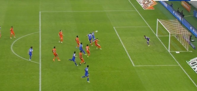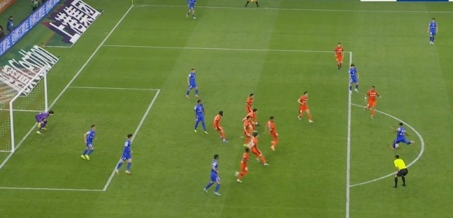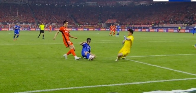 第12分钟,申花右路传中,路易斯争顶时冲撞门将,不过这球他也越位在先。↓