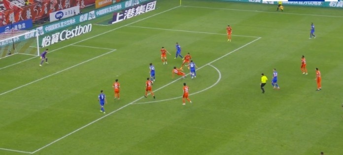 第20分钟,申花还是右侧角球机会,吴曦甩头攻门高出横梁。↓