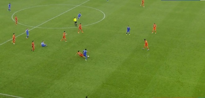 第55分钟,路易斯左路脚后跟一磕,陈晋一套边送出横传,米内罗前点打门没有打出角度偏出近端立柱。↓