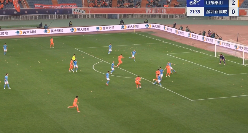 第30分钟,泰山队将优势扩大到4球,卡扎伊什维利抢断后脚底板向后拉球送出助攻,克雷桑远射破门,泰山队4-0领先新鹏城。↓