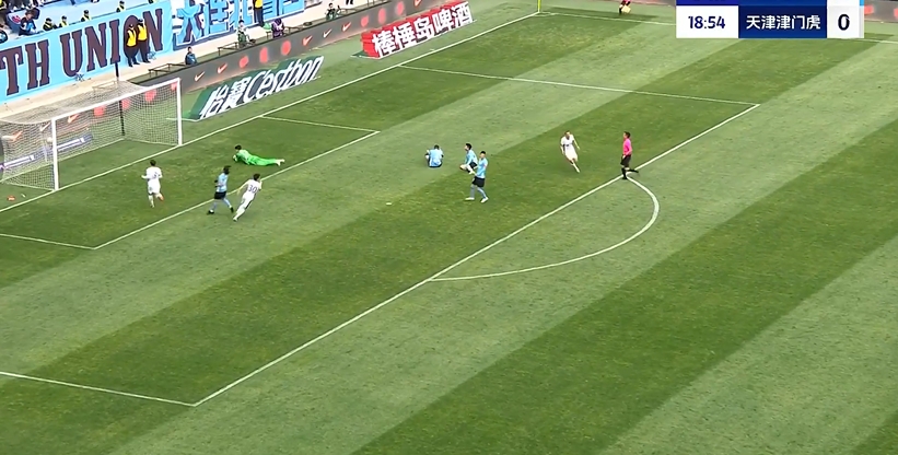 第18分钟,基莱斯中线启动收获单刀,他冷静闪开防守推射破门!1-0!天津津门虎首开记录!↓