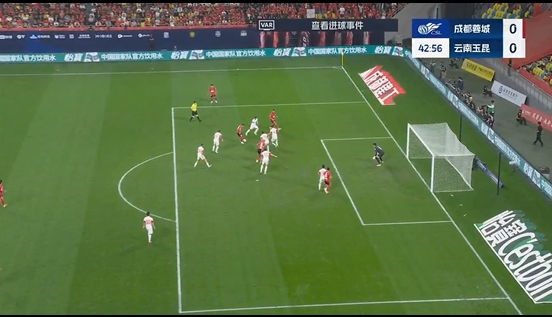 第42分钟,成都蓉城前场高位逼抢,周定洋抢点扫射破门,边裁示意越位,但经VAR长时间介入后主裁最终盘点机进球有效!1-0!成都蓉城打破场上僵局!↓