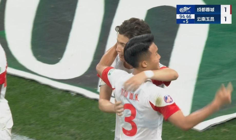 侯永永95分钟绝平!蓉城1-1玉昆 周定洋破门费利佩中框戴帽