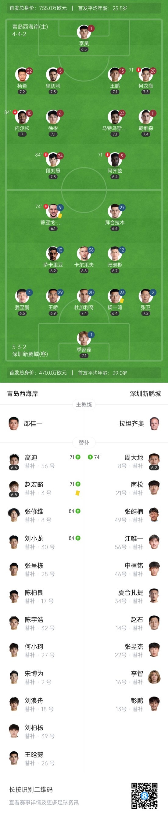 上半场补时3分钟,青岛西海岸0-0深圳新鹏城。