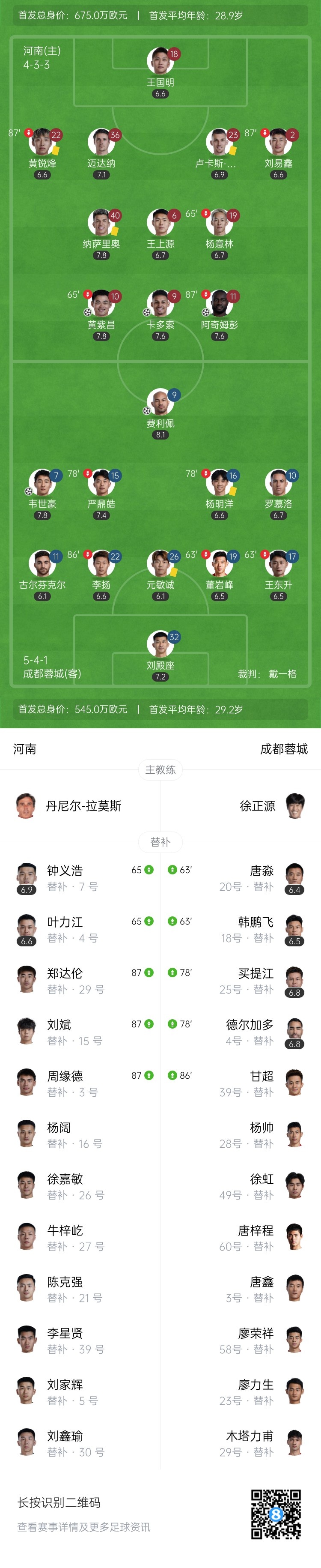 第8分钟,韦世豪左路接到长传,带球杀到禁区前,晃动后内切远射破门!成都蓉城1-0领先河南队↓