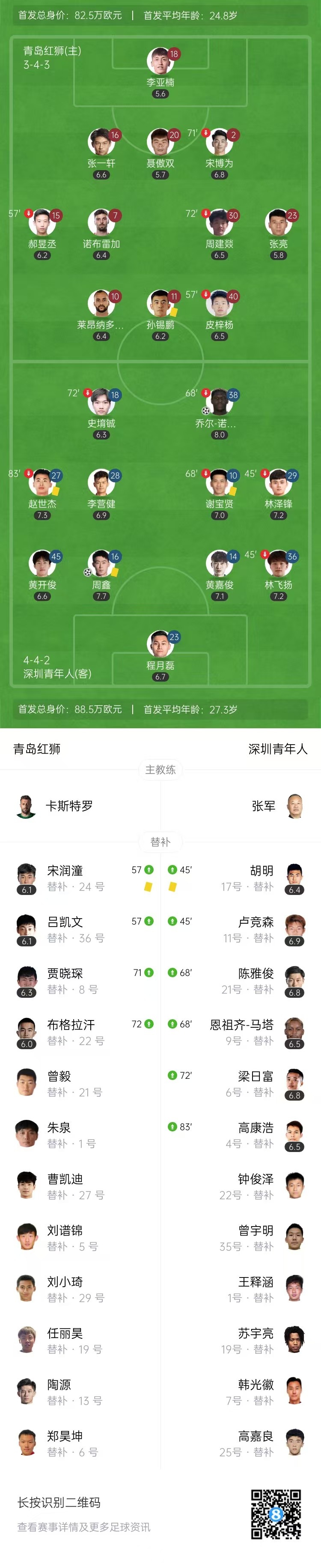 中甲-深圳青年人2-0送青岛红狮6轮不胜 诺贝尔破门周鑫建功