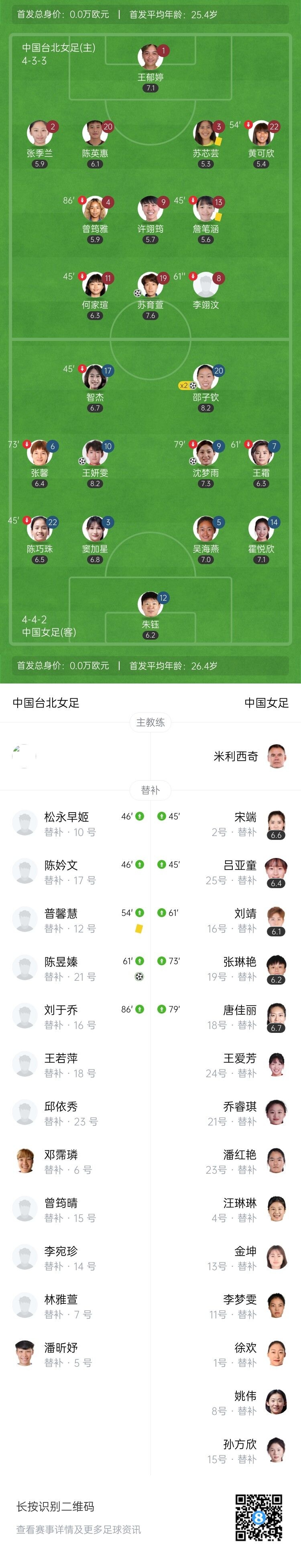 第90+6分钟,张琳艳左路下底传中,邵子钦门前头球破门锁定胜局,中国女足4-2中国台北女足。↓