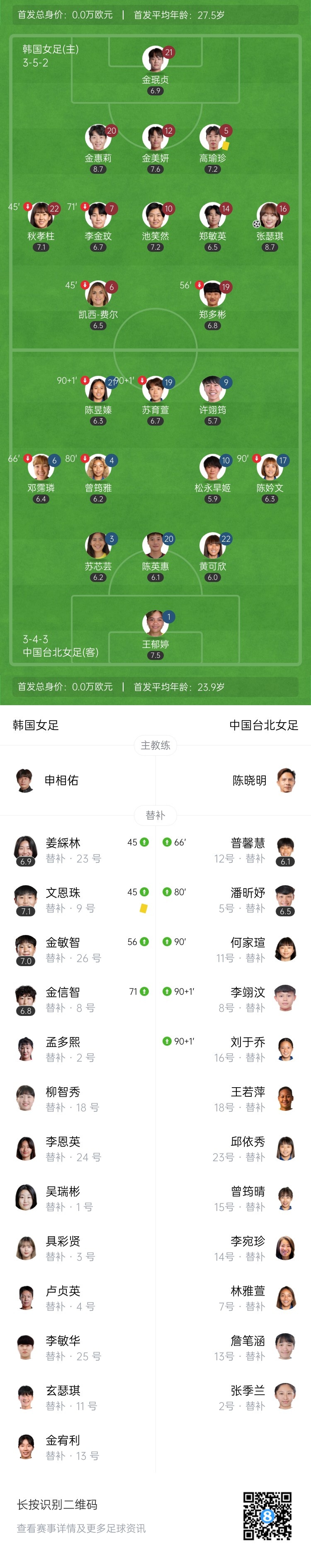 7月16日讯 北京时间18:30,女足东亚杯小组赛第3轮,韩国女足vs中国台北女足。上半场,韩国队定位球两度造险,双方均无建树。下半场,郑多彬逆天失空门;姜綵林造点,池笑然点射打破僵局;金惠莉助攻张瑟琪再下一城。最终,韩国女足2-0击败中国台北女足。
