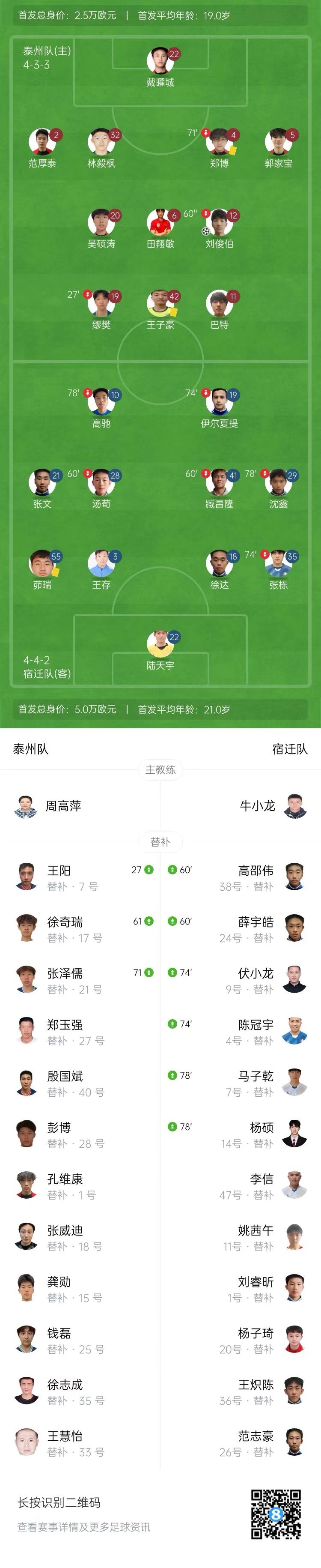 苏超-泰州队1-0宿迁队迎两连胜 刘俊伯头球致胜
