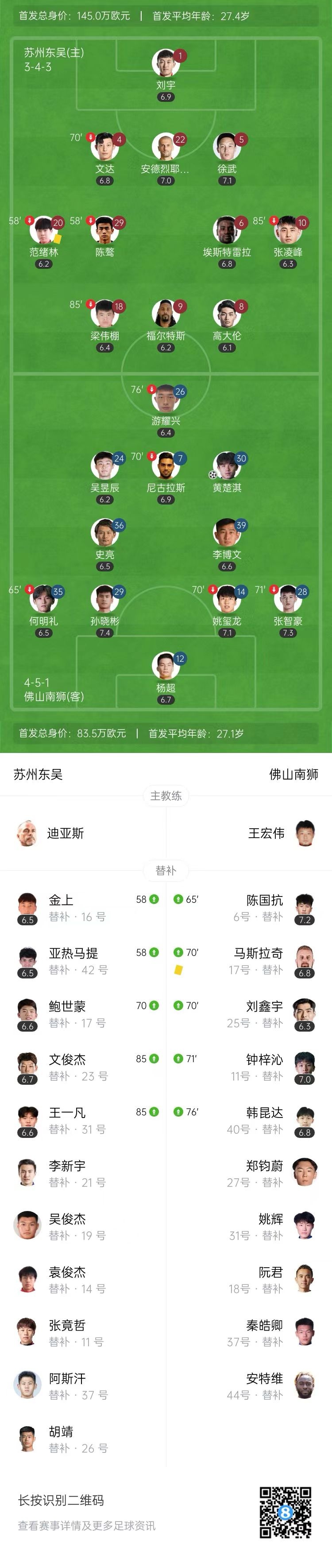 中甲-佛山南狮1-0苏州东吴迎两连胜 黄楚淇绝杀福尔特斯中柱