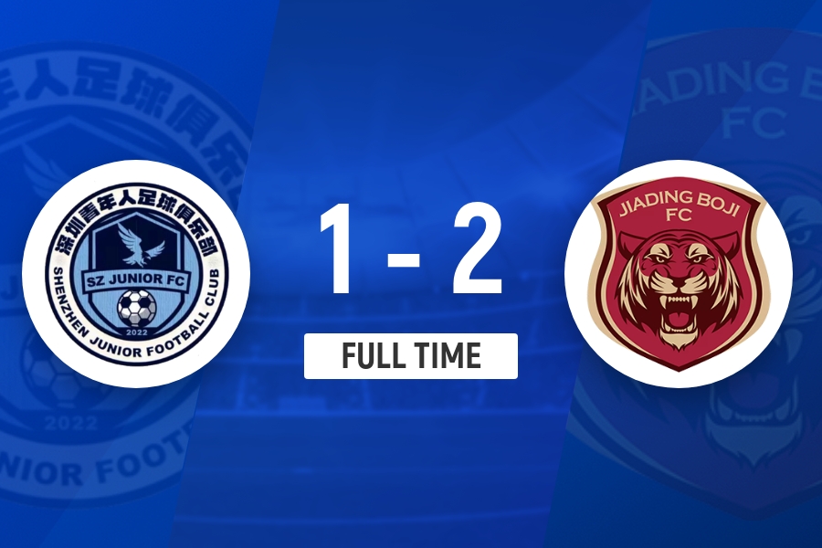 下半场补时8分钟,深圳青年人1-2上海嘉定汇龙。