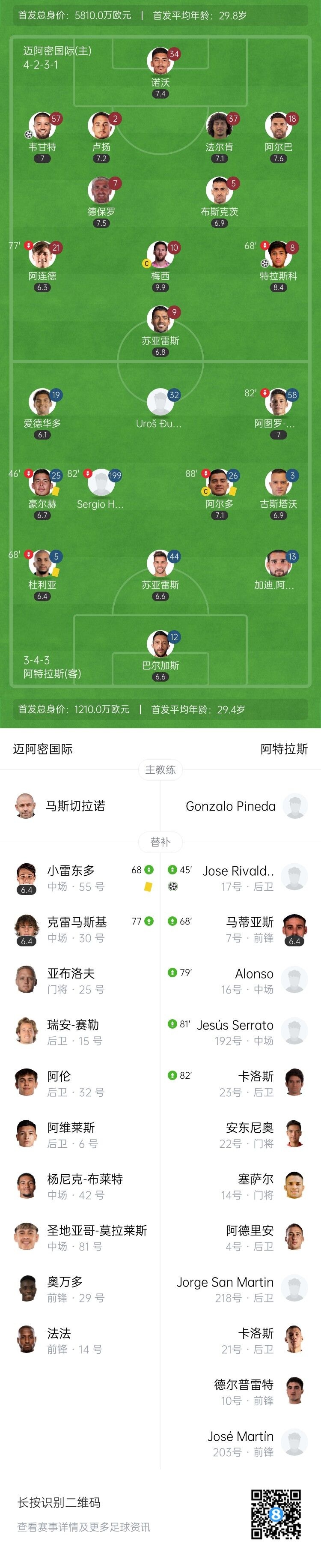 7月31日讯 北京时间7月31日上午7:30,联盟杯小组赛B组第1轮,迈阿密国际坐镇洛克哈特体育场迎战阿特拉斯。上半场,梅西多次送出妙传,诺沃神扑救主,苏亚雷斯爆射中框。下半场,梅西助攻特拉斯科破门,洛萨诺扳平比分,梅西助攻韦甘特压哨绝杀。全场比赛结束,迈阿密国际2-1阿特拉斯。