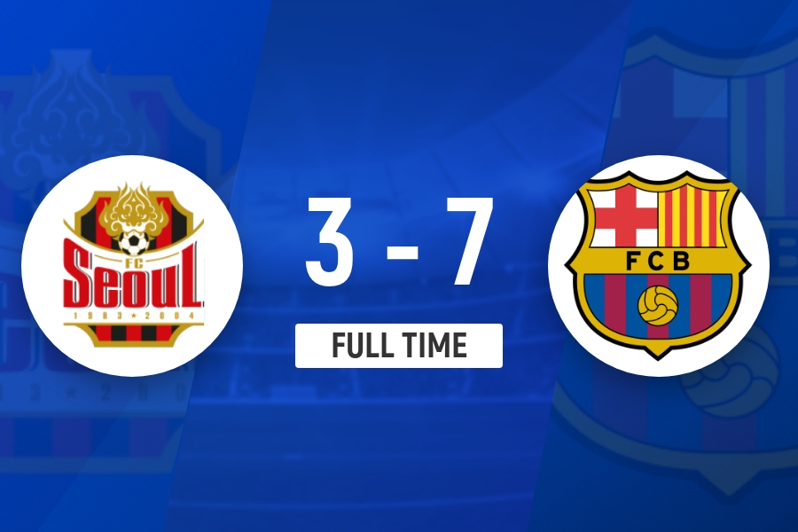 全场比赛结束,巴塞罗那7-3首尔FC。