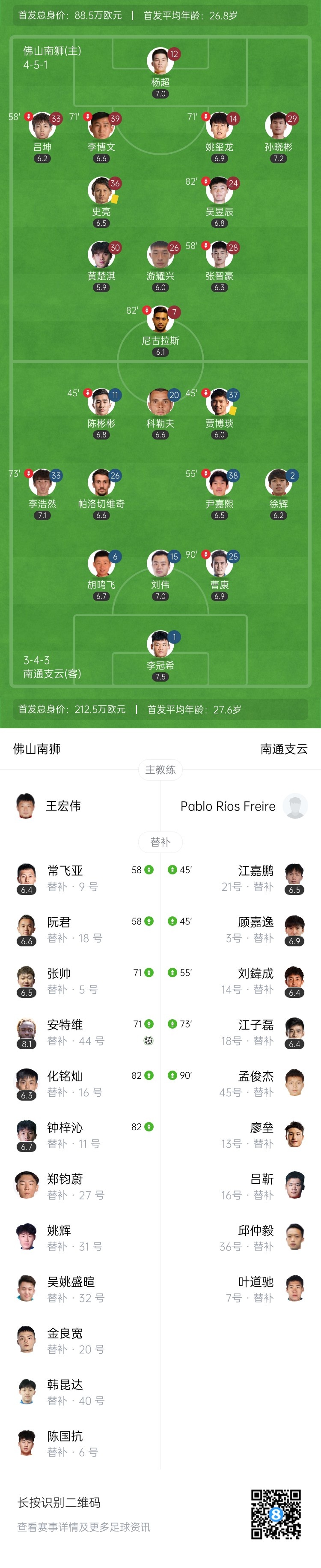 中甲-佛山南狮1-1南通支云 孙晓彬乌龙球安特维扳平