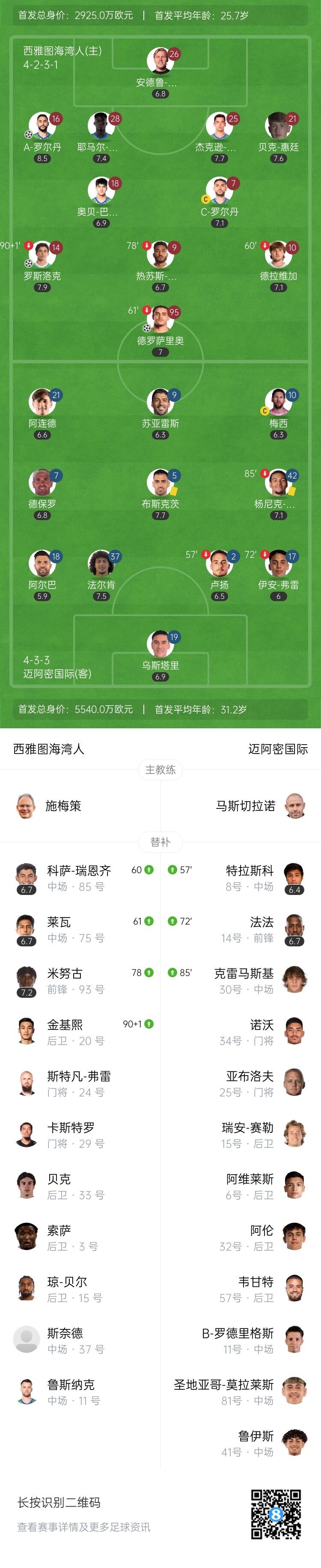 【双方首发以及替补信息】