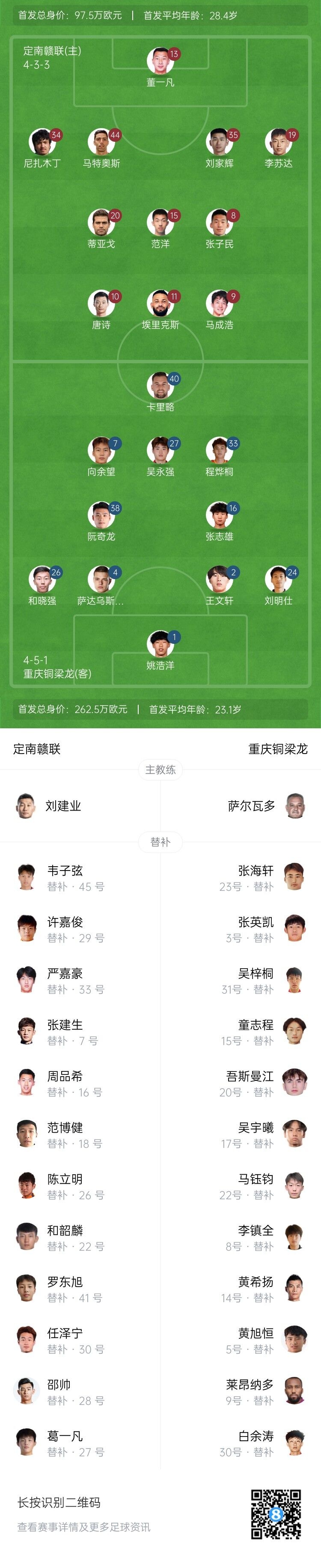 中甲-定南赣联3-1重庆铜梁龙止两连败 埃里克斯双响唐诗破门