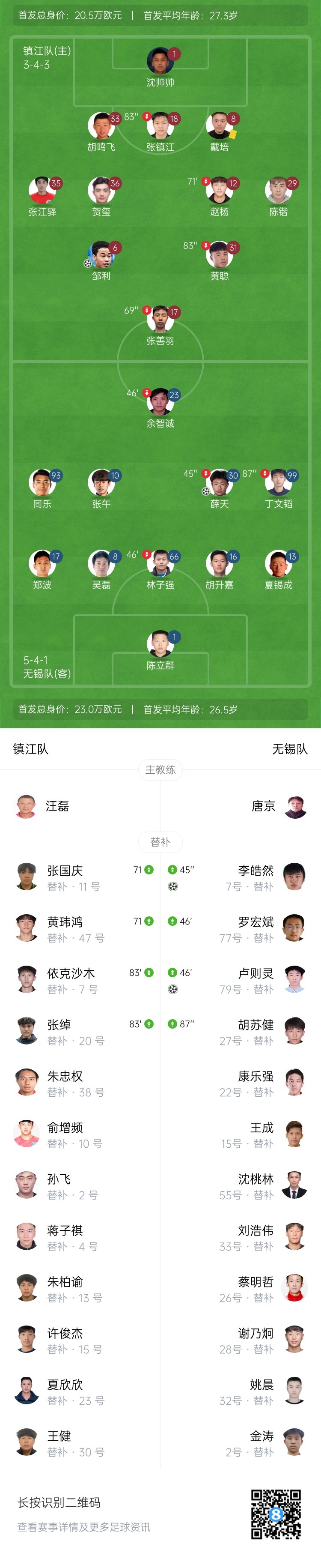 第45分钟,镇江获得点球,张善羽主罚命中将比分扳平↓
