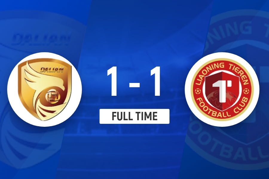 全场比赛结束,辽宁铁人客场1-1战平大连鲲城。
