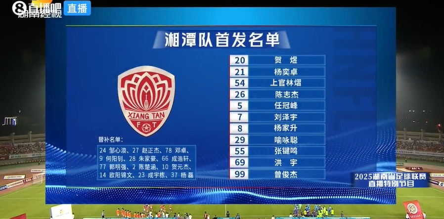 湘超-长沙队2-0胜湘潭队 长沙2胜1平仍不败 湘潭队3连败