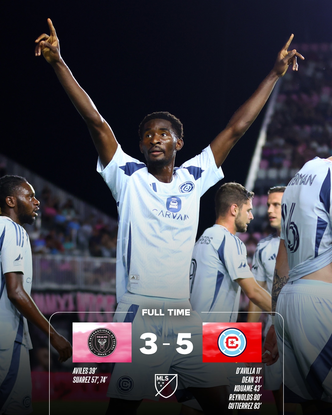 第83分钟,芝加哥扩大比分!古铁雷斯左路拿球突施冷箭远射世界波破门,迈阿密3-5芝加哥。↓