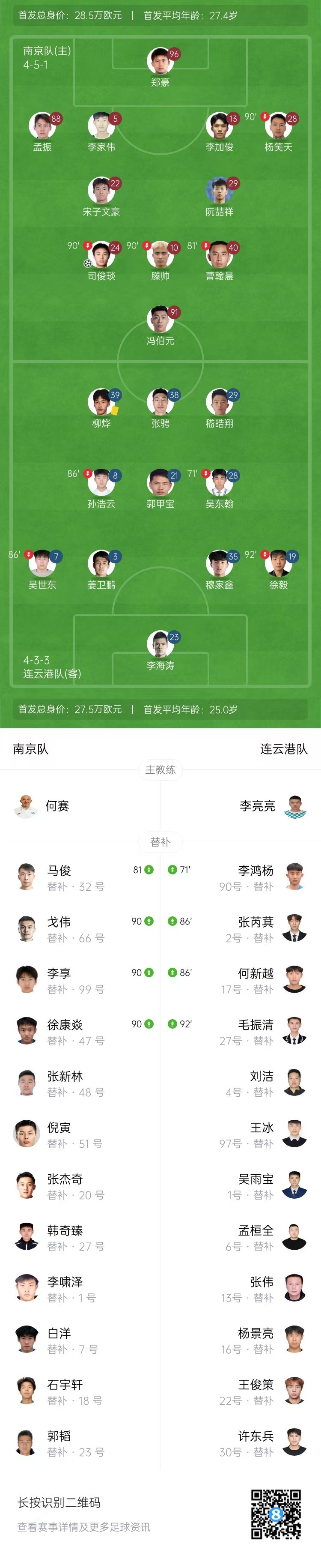 柳烨主罚点球命中扳平比分,连云港1-1南京。↓