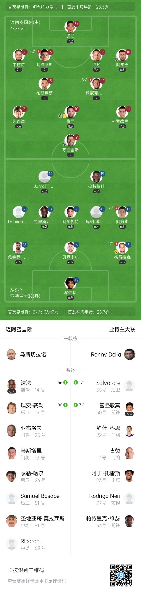 下半场补时2分钟,迈阿密4-0亚特兰大联。