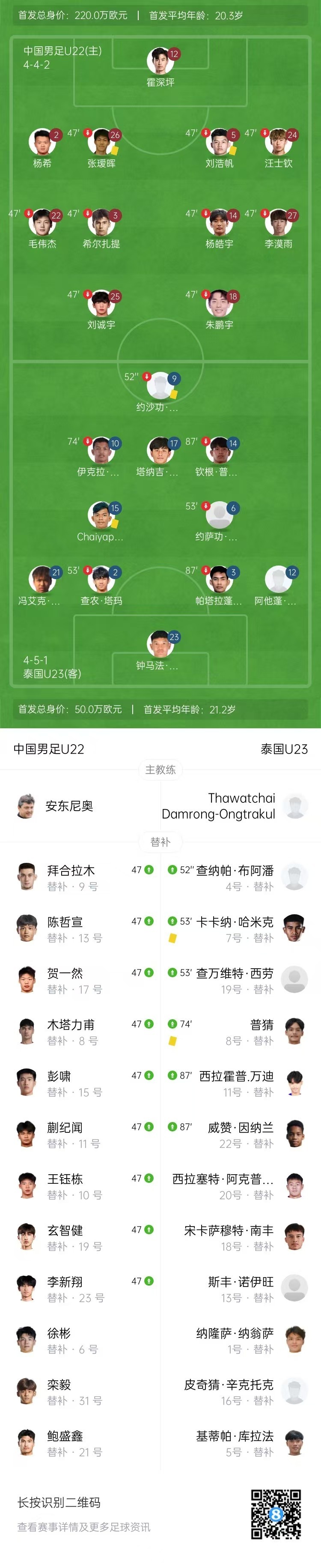 18脚射门未破门!U22国足友谊赛0-0平泰国U23 刘诚宇头球中柱