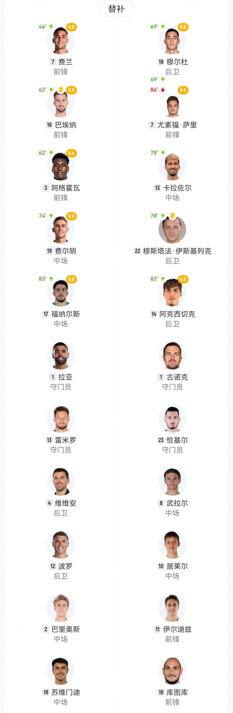【双方首发及换人信息】