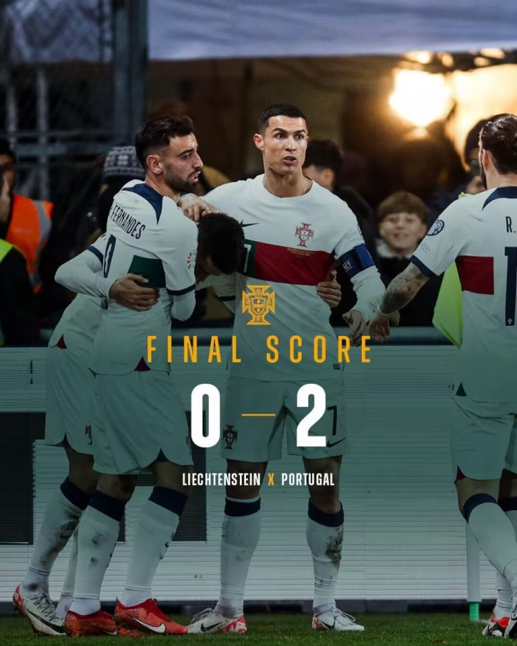 欧预赛-C罗收获国家队第128球坎塞洛破门 葡萄牙2-0列支敦士登