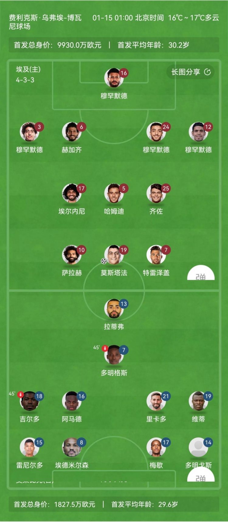 下半场补时7分钟。最终全场比赛结束,埃及2-2莫桑比克