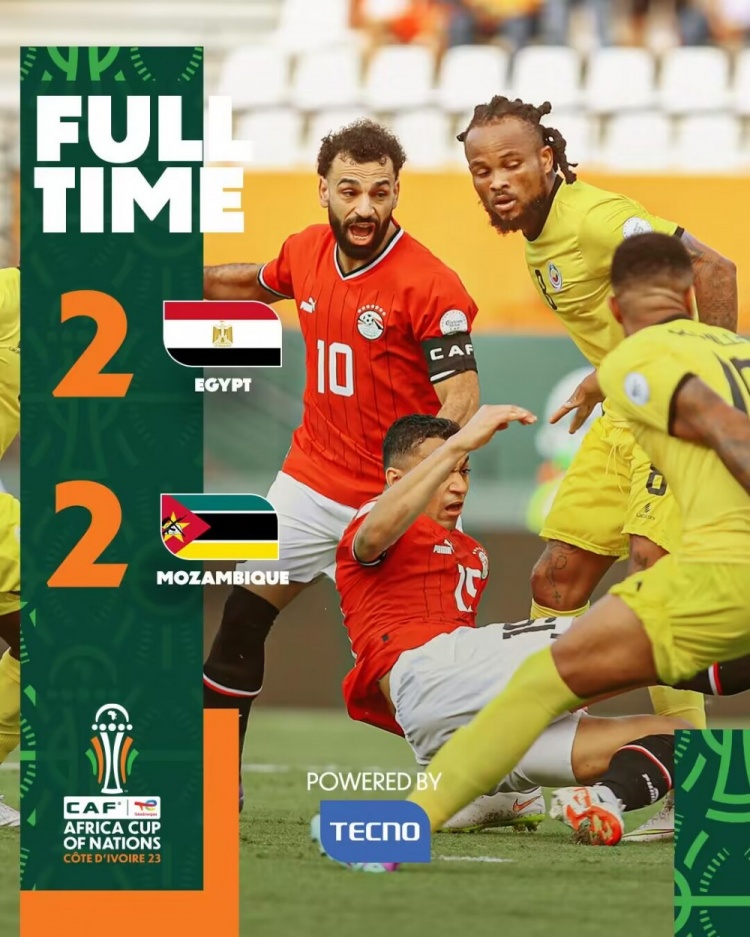 非洲杯-埃及2-2莫桑比克 萨拉赫助攻+点射绝平莫桑比克3分钟2球