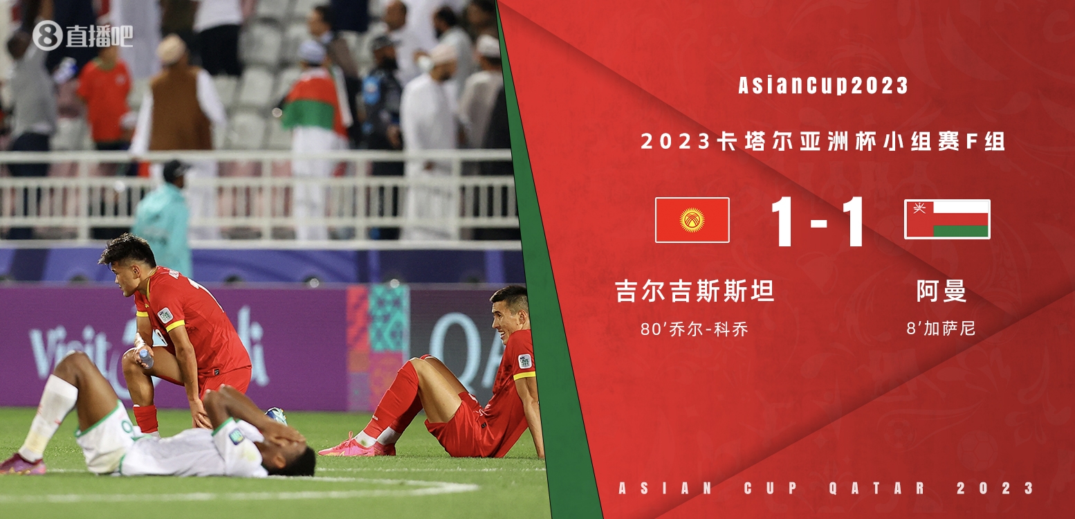 全场比赛结束,阿曼1-1吉尔吉斯斯坦。