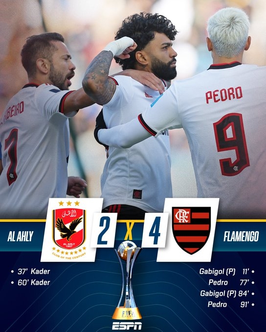 最终弗拉门戈凭借加布里埃尔以及佩德罗的双响,4-2击败对手获得季军。