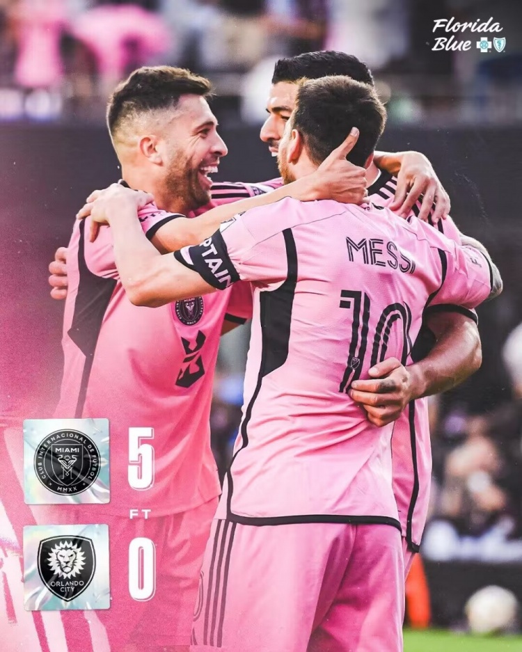 美职联-迈阿密国际5-0奥兰多城 梅西双响+任意球中柱苏牙2射2传