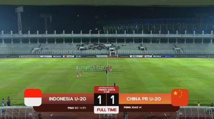 3月22日讯 北京时间3月22日21:30,U19国青在雅加达与印尼国青进行热身。上半场,U19国青利用战术角球取得领先,彭啸头球破门;下半场,两队均作出不少人员调整,贺一然送点,菲戈-丹尼斯主罚命中。最终,U19国青1-1战平印尼,两队本月25日将再战一场。