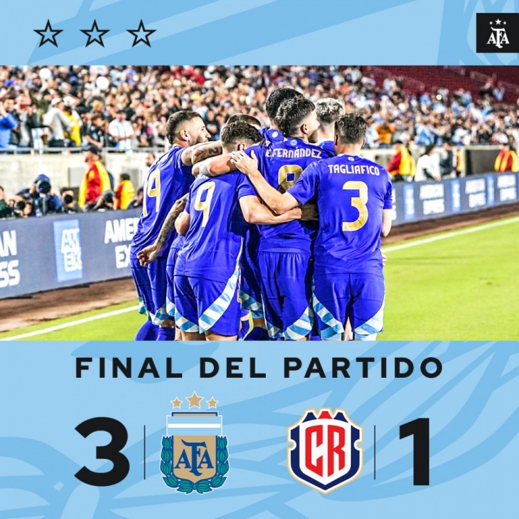 3月27日讯 友谊赛,阿根廷对阵哥斯达黎加。上半场,37岁纳瓦斯屡献精彩扑救力保球门不失,哥斯达黎加教科书二打五反击由曼弗雷拉补射破门。易边再战,迪马利亚任意球轰出世界波打进十分角扳平,麦卡利斯特头球接力补射破门阿根廷4分钟2球反超比分,劳塔罗替补建功破国家队一年半进球荒,最后时刻冈萨雷斯单刀遭门线解围。最终阿根廷3-1哥斯达黎加。