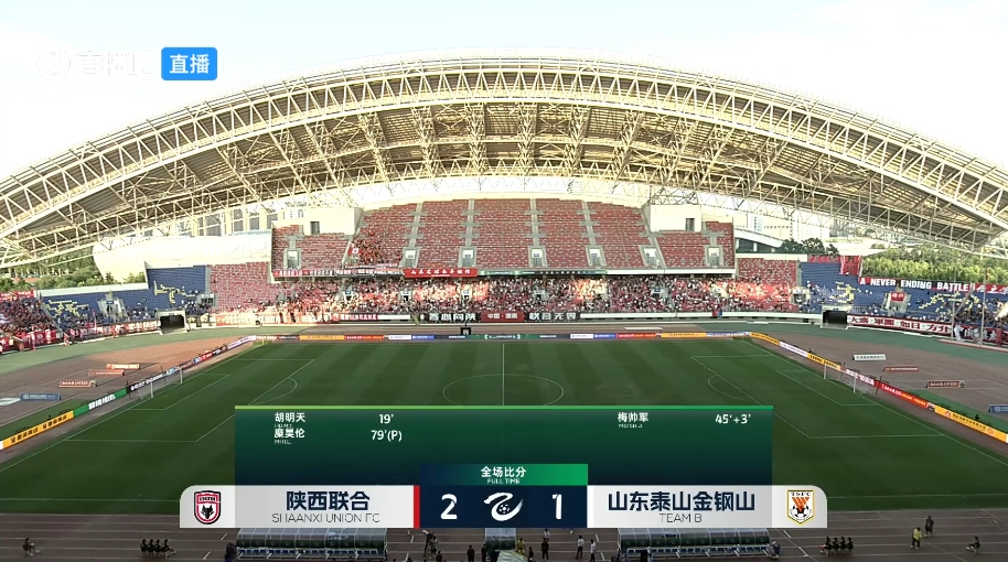 中乙-陕西联合2-1山东泰山B队结束连败 胡明天补射糜昊伦点射致胜