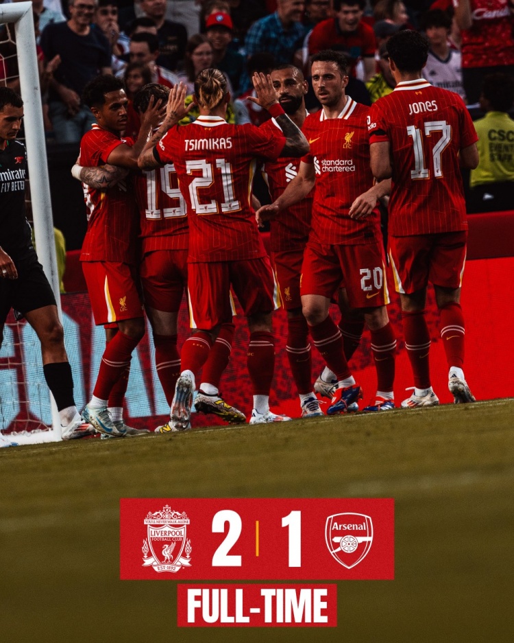 利物浦2-1阿森纳季前赛2连胜 埃利奥特助攻双响萨拉赫哈弗茨破门