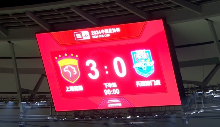 下半场补时3分钟,海港3-0津门虎。