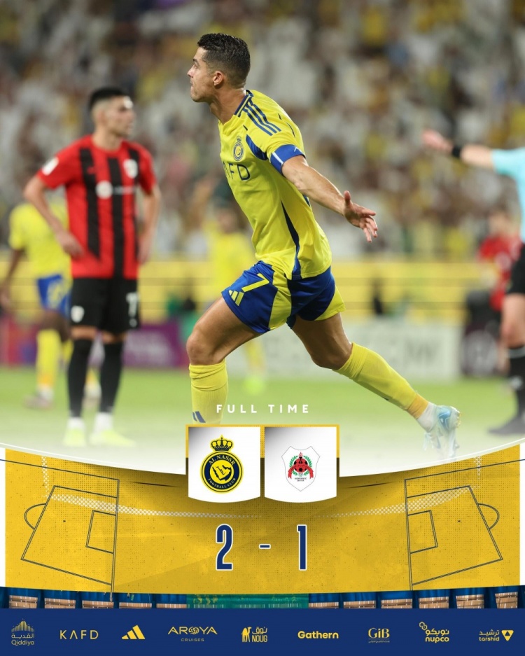 亚冠-利雅得胜利2-1赖扬取首胜 C罗连续3场破门+904球马内建功