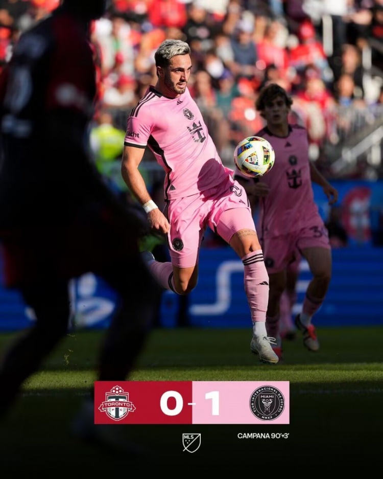 10月6日讯 美职联第36轮,多伦多FCvs迈阿密国际。上半场,多伦多FC有望改写比分,但补射的机会打飞了!下半场,梅西、布斯克茨第61分钟登场,苏亚雷斯第71分钟登场。第93分钟苏亚雷斯助攻坎帕纳绝杀!最终,迈阿密国际1-0战胜多伦多FC,8轮不败!