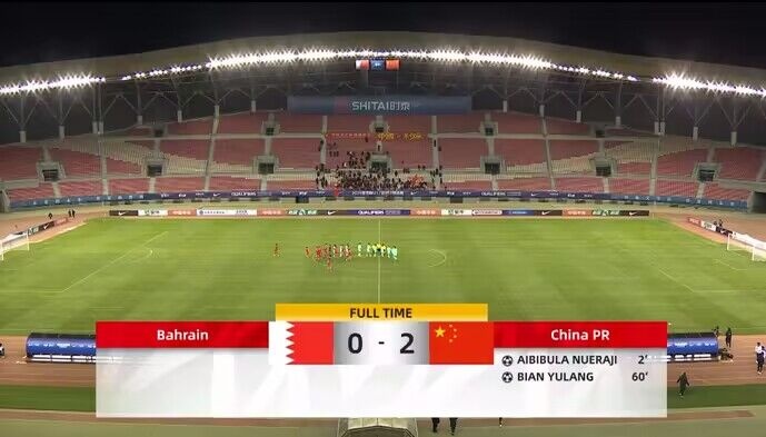 伤停补时3分钟。全场比赛结束,中国U16以2-0战胜巴林U16。