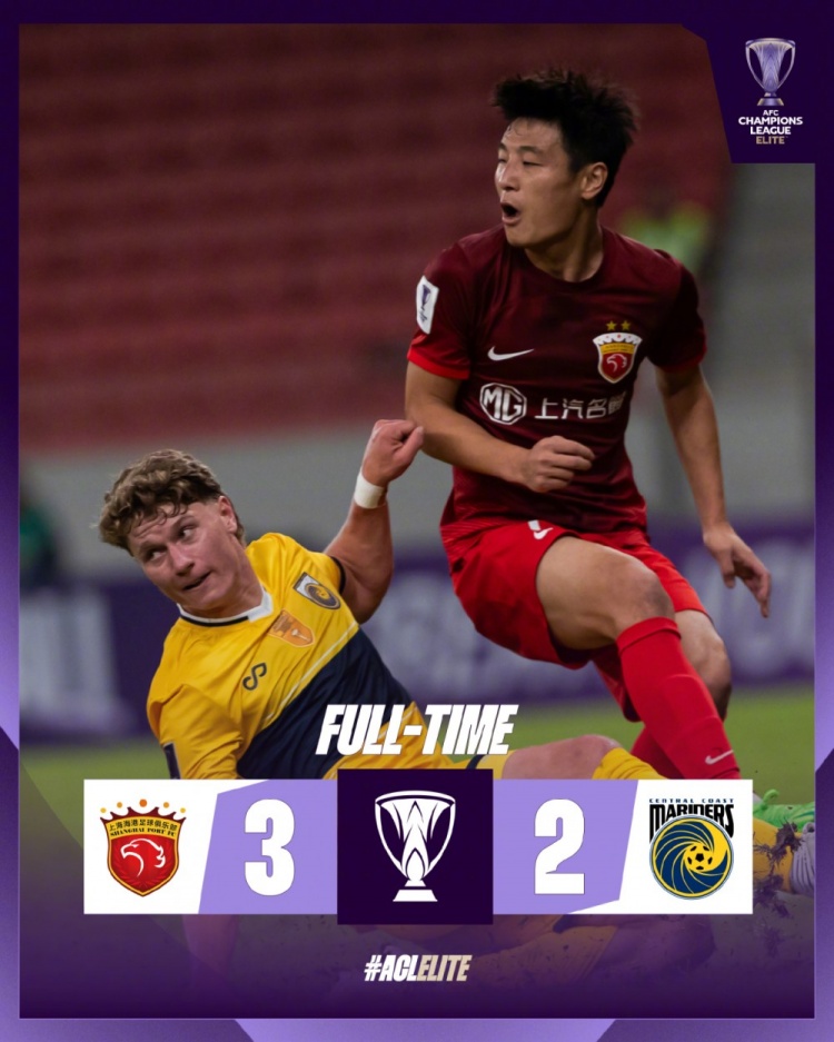 全场比赛结束,上海海港3-2中央海岸水手。
