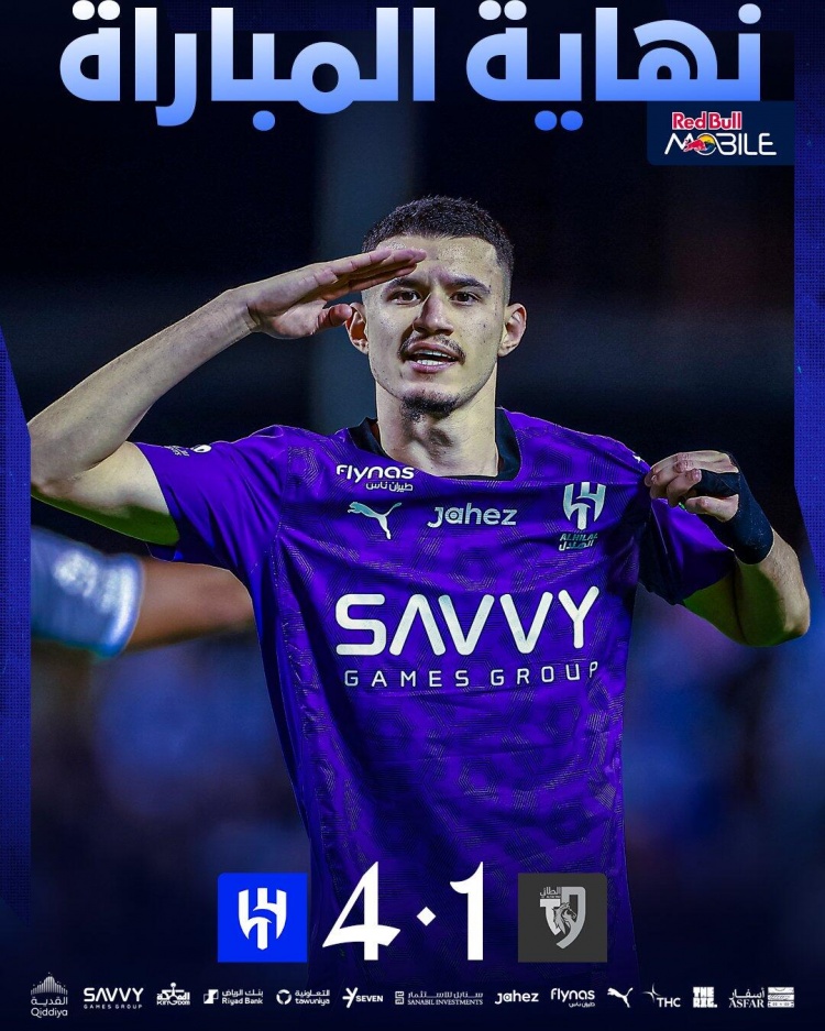 上半场补时阶段,加纳姆禁区前沿搓传,塔伊门将出击在新月球员干扰下未能将球打远,莱昂纳多补射破门,随后经过VAR检查确认新月犯规在先,进球无效。↓